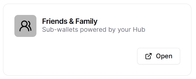 - Start by opening the "Friends & Family" app in the App Store of your Hub. This time we create a sub-wallets for ourselves.