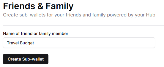 - Add a name (e.g. Travel budget) and click “Create sub-wallet”