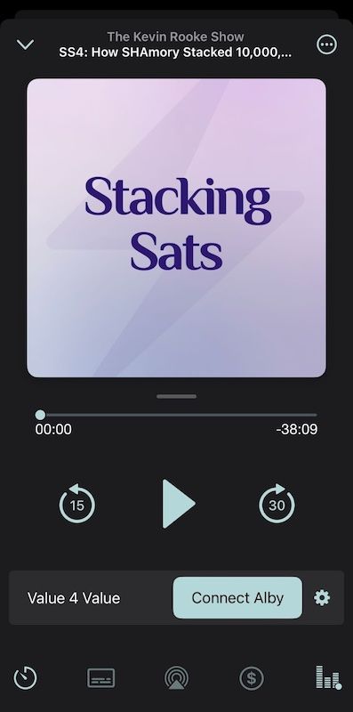 - V4V-enabled episodes show a button to connect your Alby wallet. All set!