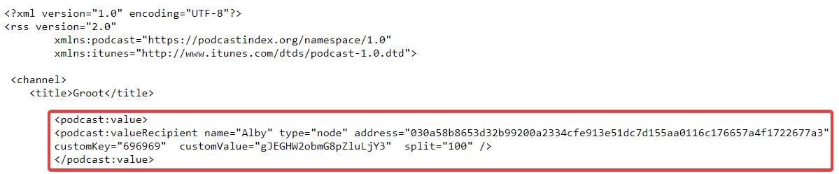 An RSS feed contains all the metadata of your podcast. This information governs what listeners will see about your podcast: from the show art, to whether a podcast shows up in relevant searches, to episode titles and descriptions. The listeners will also know if they can support you on a Value 4 Value basis and where to send the funds to. So it is essential to prepare the RSS feed accordingly if you want to tap this new opportunity for income. The part that contains this payment information in your RSS feed is called 'value tag'.