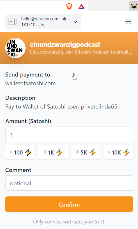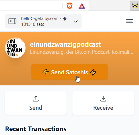 Use Alby to Send Bitcoin to BitcoinTV Creators
