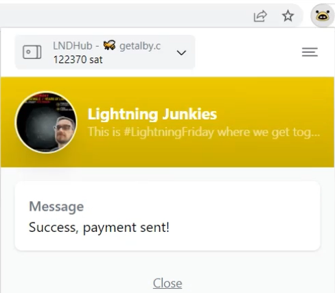 Check out how you can send sats on various social media platforms. Remember, like email addresses, Lightning Addresses are interoperable which is why it worked here for the ‘bolty@btcpay.lightninjunkies.net’. You can get one from Alby or any of these services that support it. Click here to know where else can you use the Alby Lightning Address.