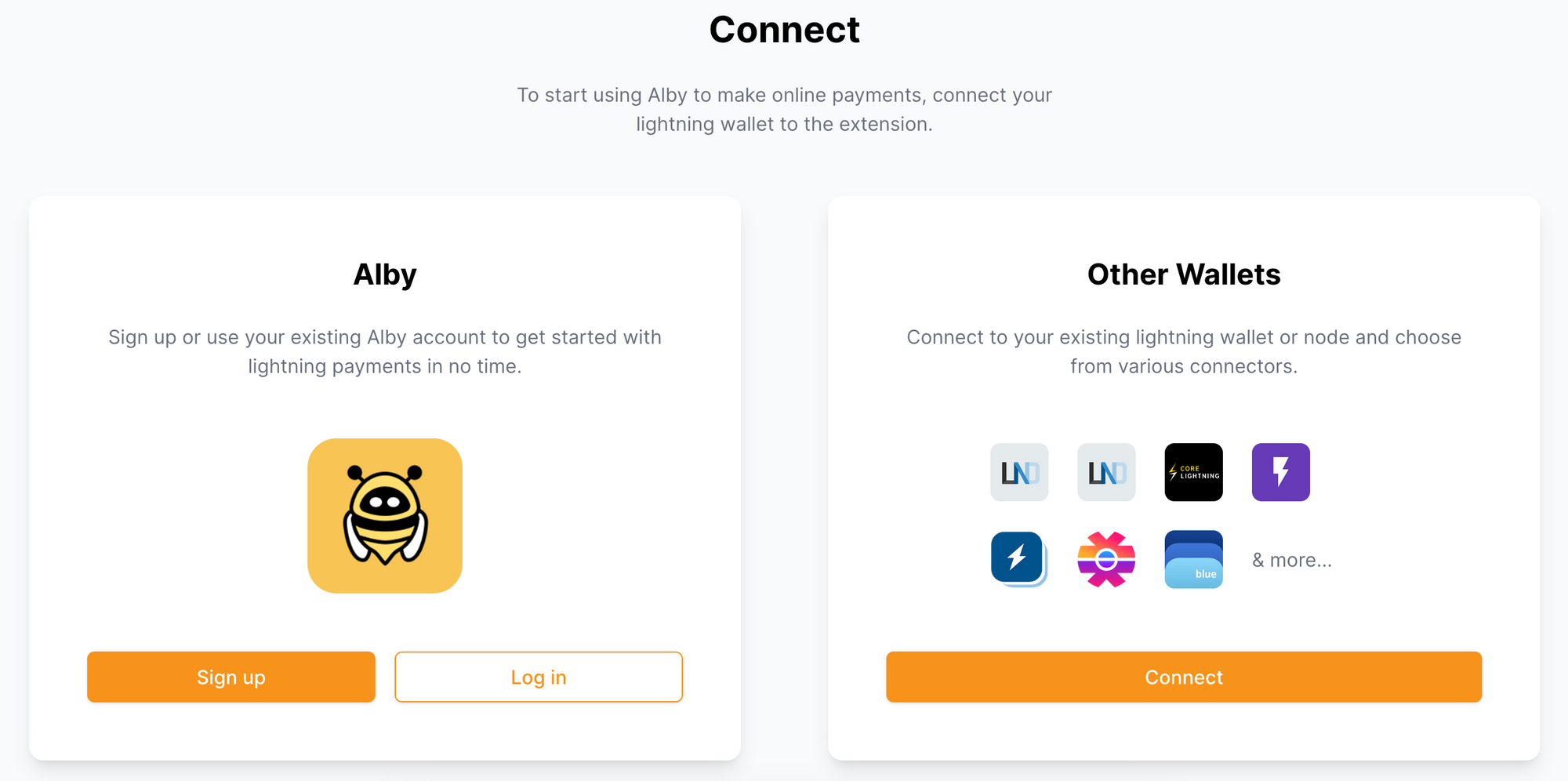 Then connect your preferred ligthning account. You can either connect your own node or an account like LNBits or LNDHub or use an Alby account.