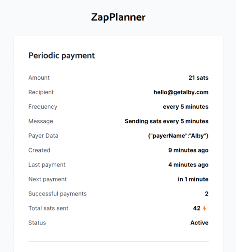 ZapPlanner sends payments on your behalf, on a regular schedule. It’s an easy way to support your favorite Value4Value creators, and it’s motivating for them to receive consistent support, too!